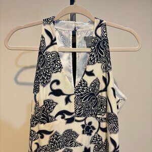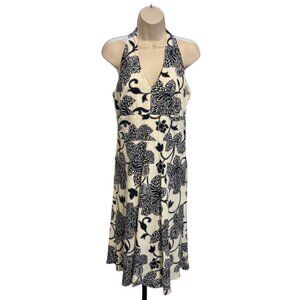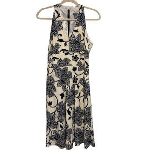 Ann Taylor Silk Black Ivory Floral Halter Dress
