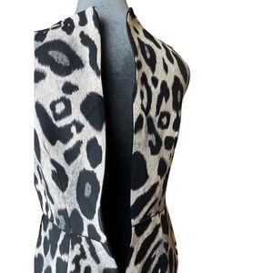 Crafted from a luxurious silk blend, it boasts a sleek silhouette adorned with a striking animal print pattern. Whether you're attending a cocktail party or a dinner date, this dress is sure to make a statement and turn heads wherever you go.