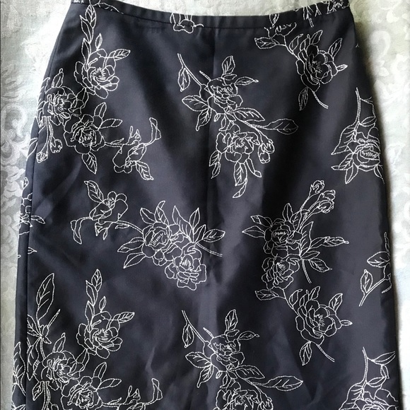 Ann Taylor Silk Blend Embroidered Pencil Skirt