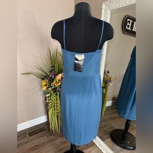 New with tags. In perfect condition. 100% silk. Faux wrap skirt. Optional straps included.