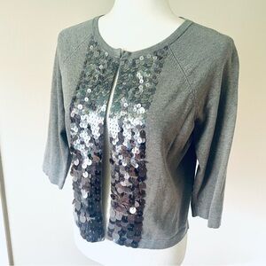Ann Taylor Silk Dressy Cardigan | Gray Sequin Gradient | 3/4 Sleeve | Size M