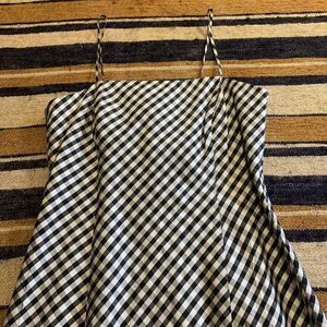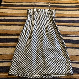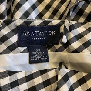Ann Taylor Silk Gingham Check Dress Spaghetti Strap Black White Plaid Petite 2
