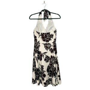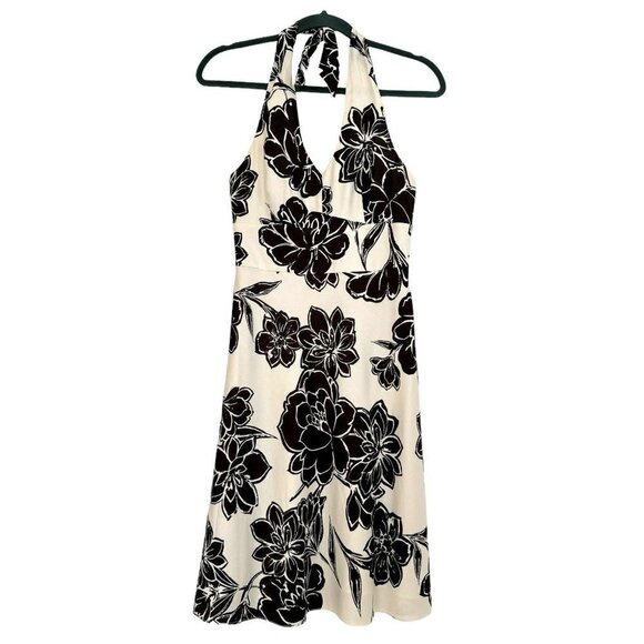 Ann Taylor Silk Halter Dress in Black Floral Size 0P