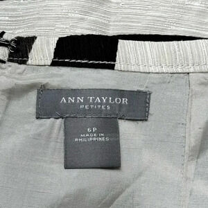 Ann Taylor Silk Linen Neutral Black Cream Wave Zebra Pencil Skirt Women's 6P