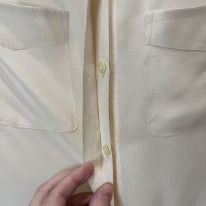 Ann Taylor Silk Roll Tab Sleeves Button Up Shirt Cream Womens Size XS 100% Silk