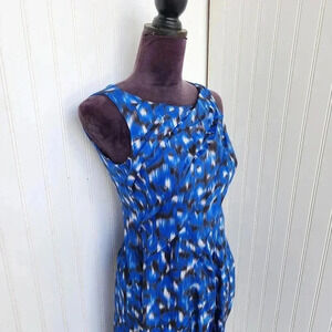 Ann Taylor Silk Sheath Dress Womans Tiered Blue Print Sleeveless Petite 0P