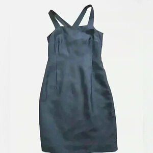 Ann Taylor Silk Shift Womens Dress Size 2P Straps Crossed Back Black Lined Side Zip