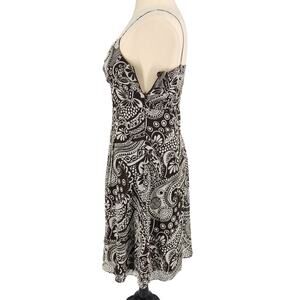 Ann Taylor Silk Slip Sundress Abstract Floral Graphic Print Brown White