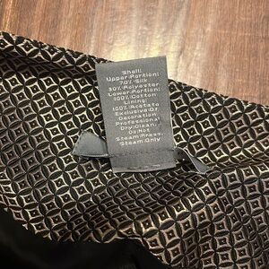 Ann Taylor Silk and Cotton Blend Gold Print and Faux Velvet Lined Skirt, Sz. 2. This lightweight, silk and cotton prize is a great find for someone who enjoys sustainable clothing. The metallic print creates a modern twist to a classic, quiet luxury look with faux velvet. Perfect for Spring, Summer and Fall or under a luxurious coat with tights in the Winter, this piece is a lovely choice. No flaws or damage. It is a statement piece and a great addition to any closet.