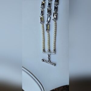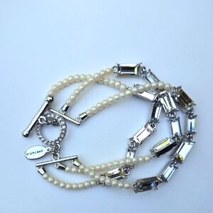 Ann Taylor Silver Tone Rehinestone Fuax Pearl Bracelet