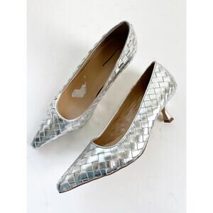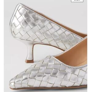 Ann Taylor Silver Weaved Kitten Heel Pumps - Size 7M