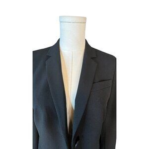 black blazer, women's blazer, ann taylor blazer, two-button blazer, size 0 blazer, formal jacket, tailored blazer, black jacket, office blazer, rayon blend blazer, spandex blazer, women's workwear, fitted blazer