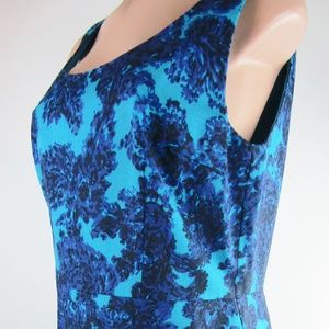 Teal Blue and Black Floral Sheath Dress Knee length Sleeveless size 12