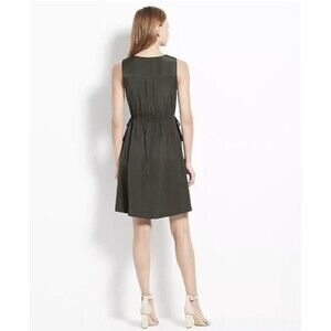 Ann Taylor Size 14 Woodland Green Satin Drawstring Side Tie Shirt Dress …
