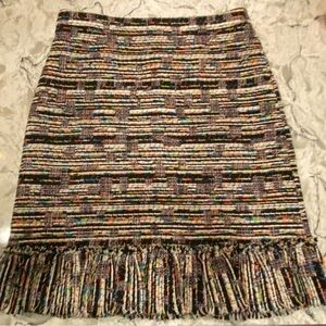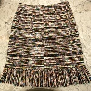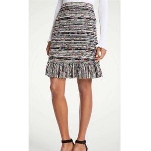 Ann Taylor Size 4 Bright Color Tweed Woven Fringe Ruffle Hem Skirt Knee Length