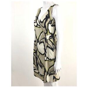Ann Taylor Women's Size 4 Beige Green Faux Wrap Cotton Blend Dress