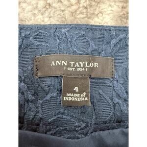 Ann Taylor Size 4 Floral Textured A Line Mini Skirt Navy Zip Casual