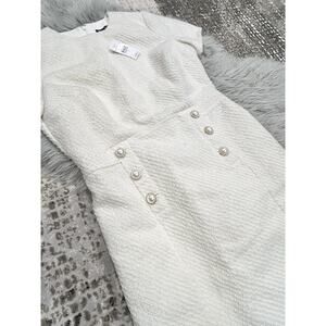 Ann Taylor Size 4 Pearlized Button Cream Tweed Sheath Dress