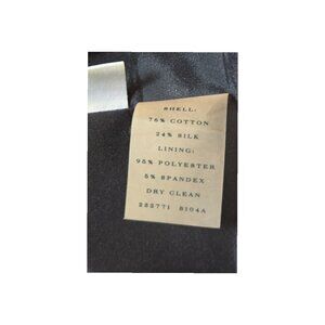 Material: 76% Cotton, 22% Silk. Lining: 100% Polyester. Lining: 98% Polyester, 2% Spandex. Dry Clean.