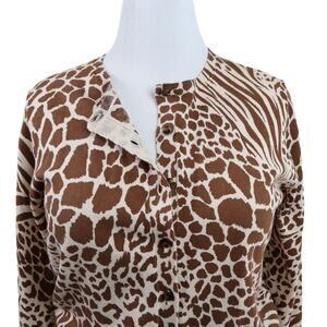 Ann Taylor Size L Cotton Animal Print Ann Cardigan Warm Rosewood
