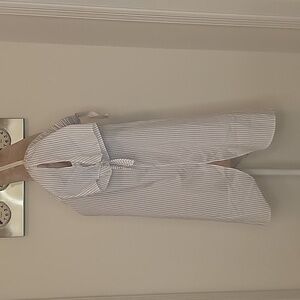 Ann Taylor, Size L Strapless / Cold Shoulder Top. NWT. Blue & White Striped. Gorgeous top that can be worn off or on shoulder. Cold Shoulder Sleeves with Tie at Hems. Light Blue and White are so cute for summer vacations or casual days. Looks great with shorts or a cute white skirt!