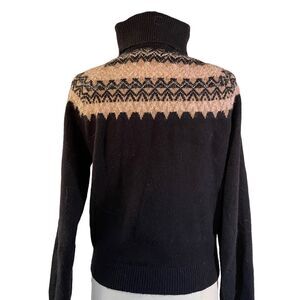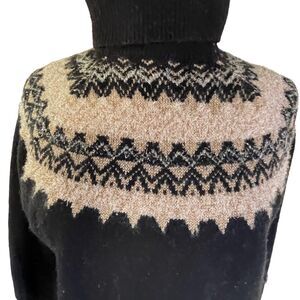 Ann Taylor Size M Women Black Turtleneck Fair Isle Nordic Metallic Sweater Boho