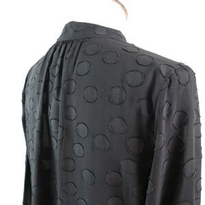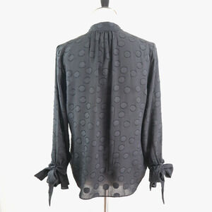 Ann Taylor Size Petite M Keyhole Neck Blouse Tie Black Polka Dot