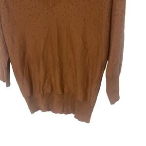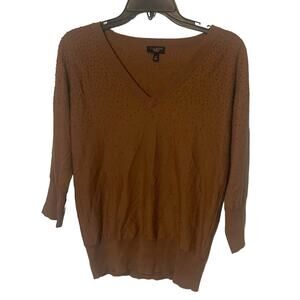 Ann Taylor Size Small Petite Beaded Brown Silk Blend Henley Sweater