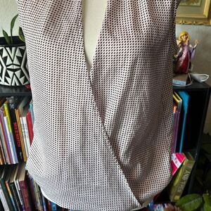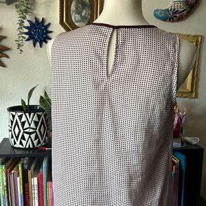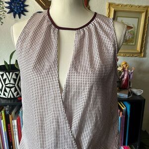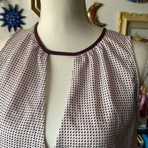 Ann Taylor Size Small White & Burgundy Blouse low V front Satin