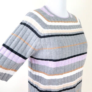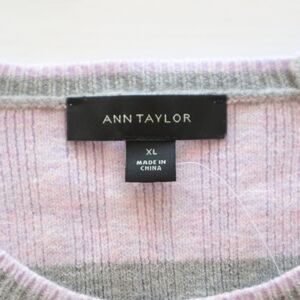 Ann Taylor Size XL Rib Knit Stripe Raglan Sweater Lilac Purple Gray