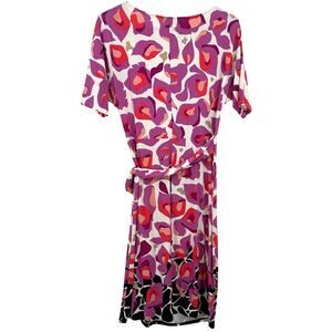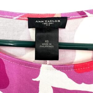 Ann Taylor Size XS Short Sleeve Dress Abstract Floral Print Purple Pink White