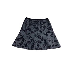 Ann Taylor Skirt 14P Womans Petite Wool Velvet Floral Gray Black Zip