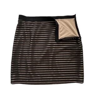 Ann Taylor Skirt Black Cream Elastic Waist Knee Length Straight Pencil Size 14