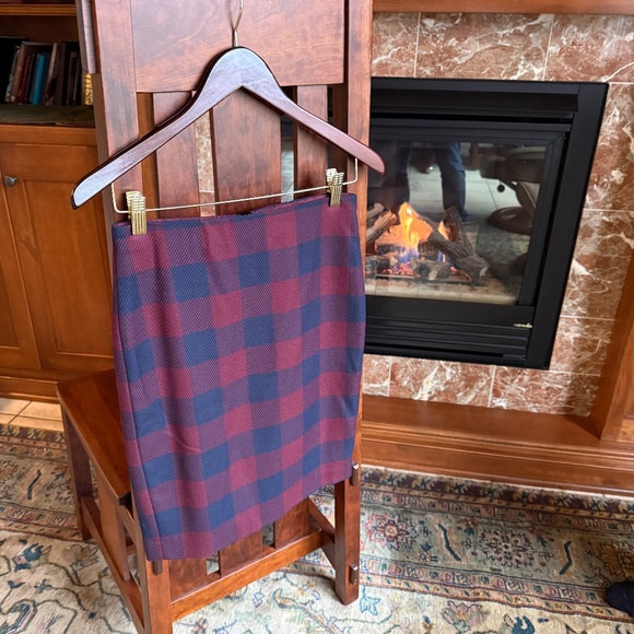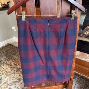 Ann Taylor Skirt, Burgundy & Navy Plaid Pencil Skirt, Size 2 Petite