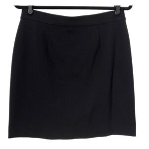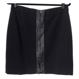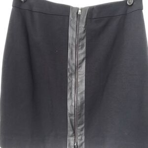 Ann Taylor Skirt Size 8 Black Straight Pencil Faux Leather Trim Back Zipper