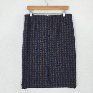 Ann Taylor Skirt Womens 10 Navy Blue Pencil Textured Jacquard Houndstooth NEW