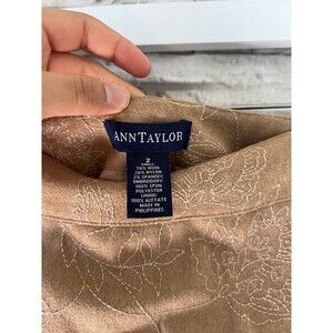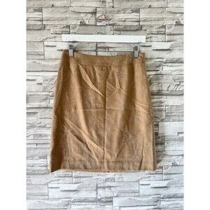 Ann Taylor Skirt Womens 2 Tan Embroidered Wool Blend Lined Mid Length Side Zip