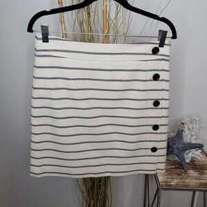 Ann Taylor Side Zip Striped Button Detail Lined Skirt