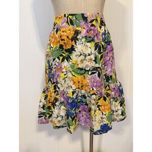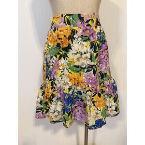 Ann Taylor Skirt Womens 8 Multicolor Floral Ruffle Hem A Line Summer Brights