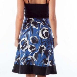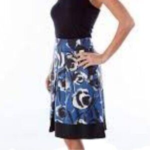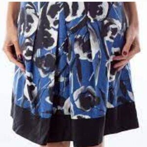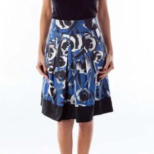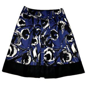 Ann Taylor Skirt Womens Sz 2 Blue/Black Floral Silk Wool Pleated A-Line Pockets