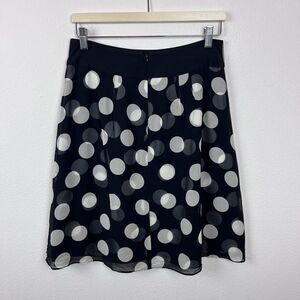 Ann Taylor Skirt Womens Two Silk Chiffon Polka Dot Whimsy Preppy Gothic Black