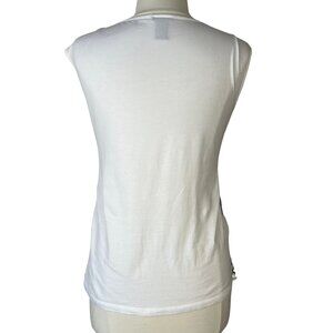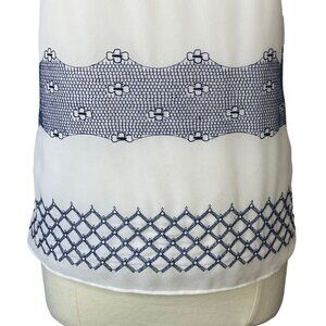 Ann Taylor Sleeveless Blouse Shirt Womens Small White Blue Embroidery
