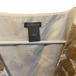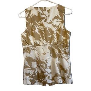 Ann Taylor Sleeveless Cream and Tan Floral Abstract Blouse Top SZ Small