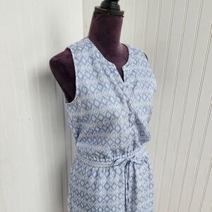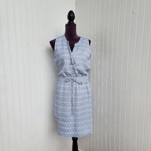 Ann Taylor Sleeveless Dress Casual Blue White Knee Length Textured V-Neck Sz M