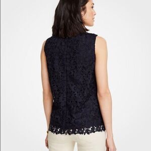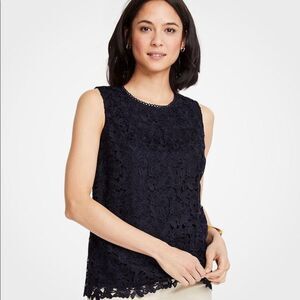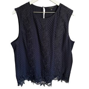 NEW without tags Ann Taylor Navy Blue Embroidered Lace Shell Top size XL