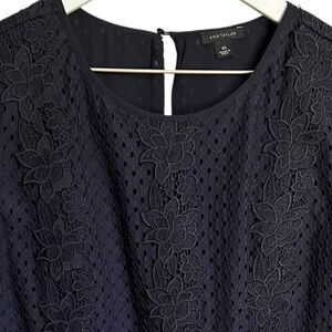 Ann Taylor Sleeveless Embroidered Eyelet Lace Top Womens XL Navy Shell Blouse