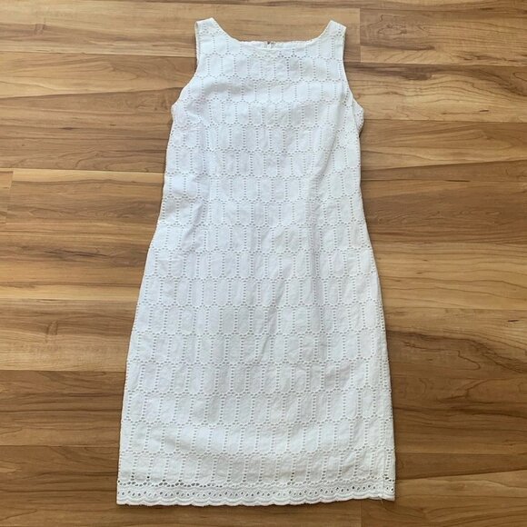 Ann Taylor Sleeveless Eyelet Lace White Midi Dress Size 4 Lined Zip Cotton