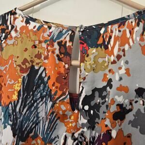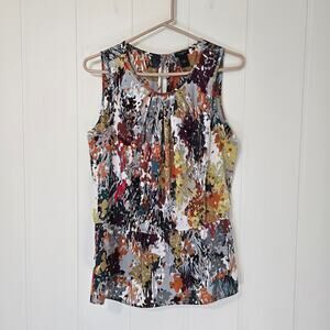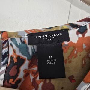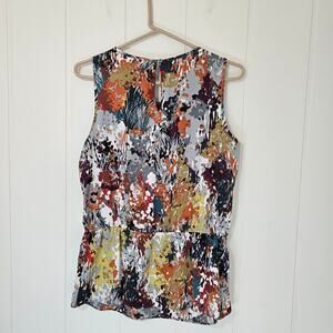 Ann Taylor Sleeveless Peplum Blouse Fall Colors Pleated Neckline Size Medium