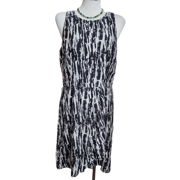 Ann Taylor Sleeveless Round Neck Black & White Fully Lined100% Silk Dress Size10
