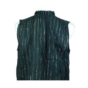 Ann Taylor Sleeveless Striped Sheer Blouse Tie Keyhole Neck Small Deep Green